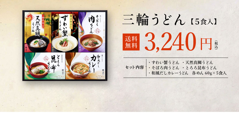 | 商品名/品番 | 三輪うどん詰合せ 5食入/lgu-300 |